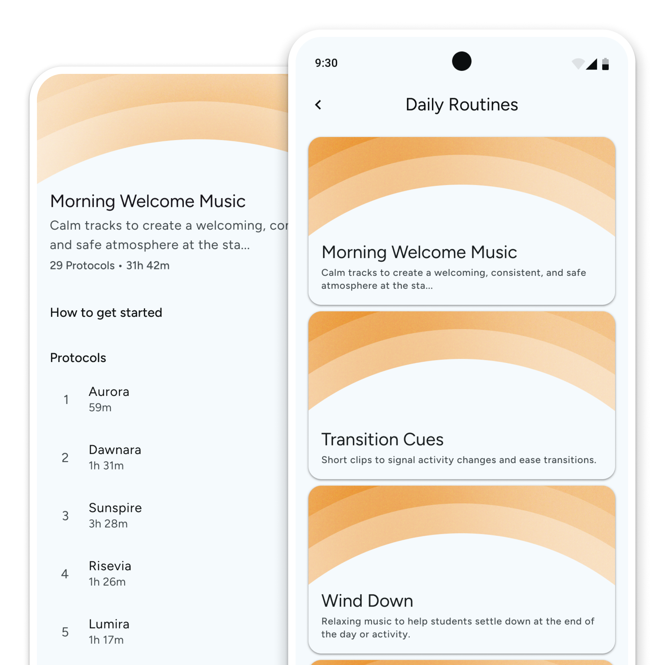 Wind Down: Relaxing music at the end of the day or activity to help students settle down. Explore more in the Daily Routines library to create a structured and peaceful environment.